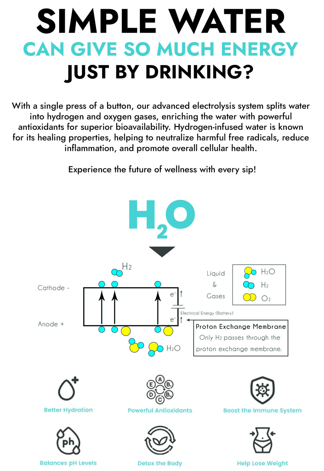 Unlock the ultimate hydration experience with our cutting-edge hydrogen-infused water bottle. Boost energy, improve recovery, and nourish your body with powerful antioxidants in every sip. Take control of your health today!